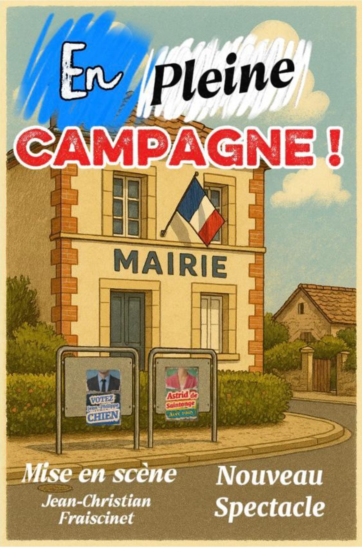 « En Pleine Campagne », c’est la satyre désopilante et haute en couleurs d’une élection municipale en milieu rural, faite de rumeurs, de coups bas et autres rebondissements !!!