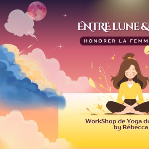 "Entre Lune & Soleil" est un yoga de la femme unique, proposé et modélisé par Rébecca, où chaque posture, respiration, mouvement et méditation sont guidés pour honorer le féminin sacré, harmoniser les énergies et réveiller force, douceur et vitalité. Un cours atypique, spécialement conçu pour les femmes, rétablissant l'équilibre corps-esprit.