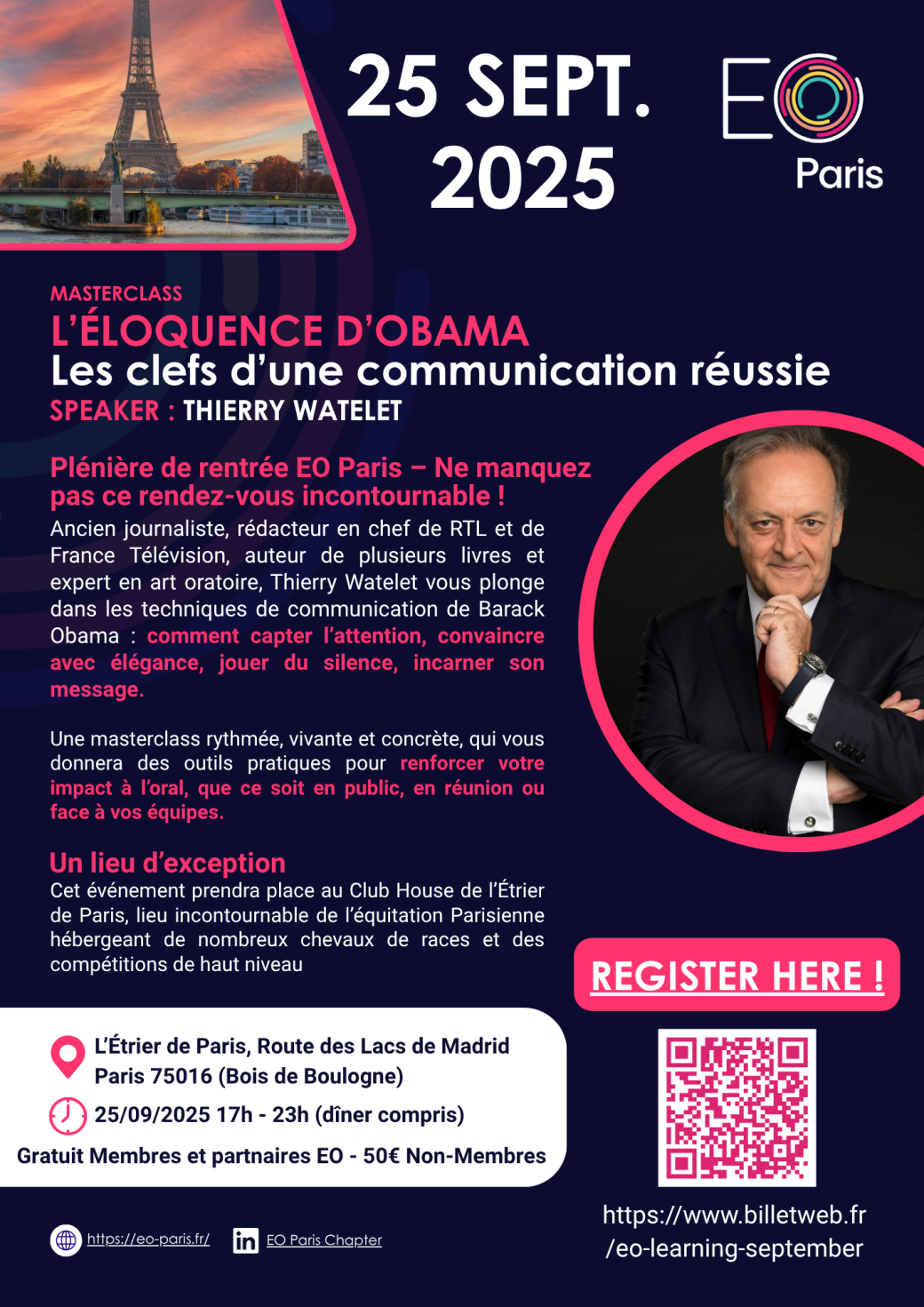Nous ouvrons l’année EO Paris dans un cadre prestigieux, au cœur du Bois de Boulogne, avec une soirée placée sous le signe de la puissance de la parole et du plaisir de se retrouver.