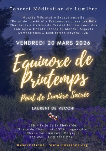 L'Equinoxe étant un“Point de Lumière Sacrée” où l'énergie Feu de l'Esprit & ses Codes de Lumières se déversent sur l'humanité. Il est donc important de nous réunir et d'accueillir en Soi la paix profonde et l'Amour afin d'amorcer le Renouveau...