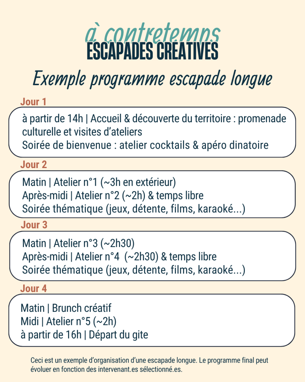 Nos escapades créatives sont faites pour beaucoup de profils différents.