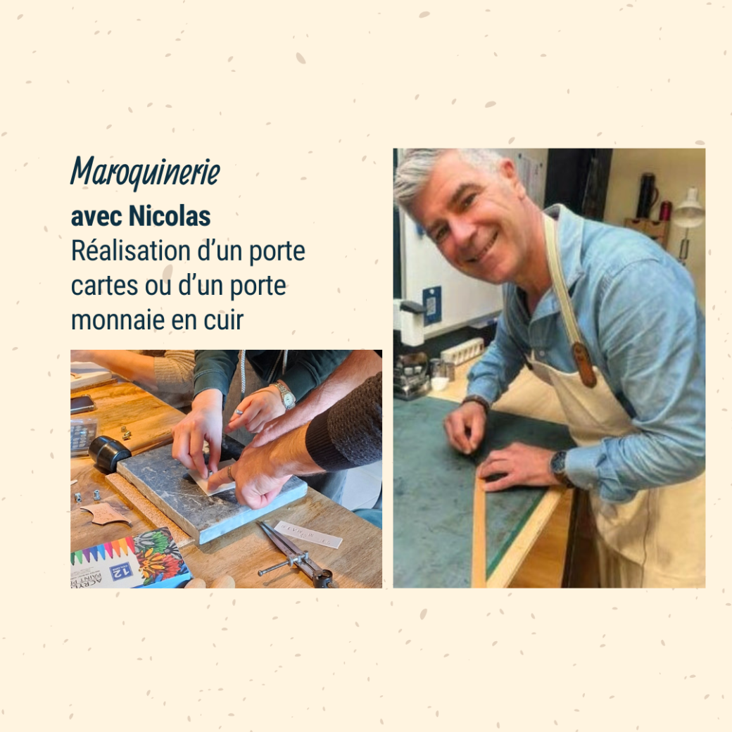 - Le cuir et la maroquinerie : Nicolas vous montrera le repoussage de cuir pour créer le décor de votre futur porte-monnaie ou porte cartes