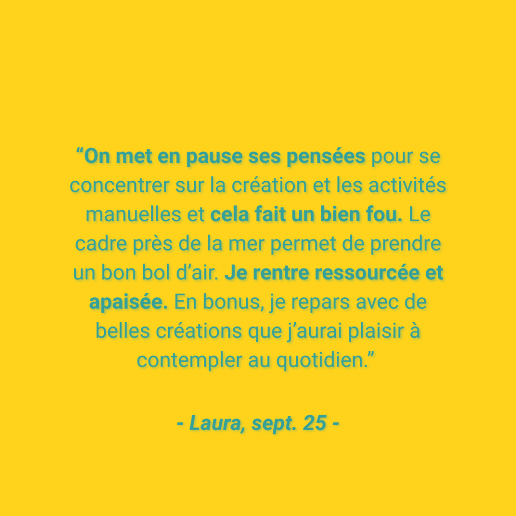 Les escapades créatives et ressourçantes Aelig ont été imaginées pour t'aider à enfin te faire passer en priorité, poser ton cerveau, renouer avec ta créativité et te reconnecter à l'essentiel. Et ça c'est d'autant plus important dans cette période où l'on célèbre l'amour et notamment l'amour de soi !