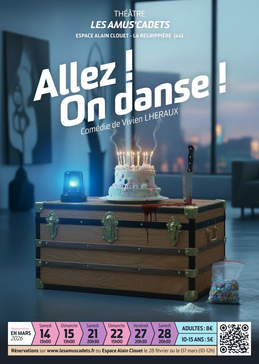 2026-03-14 15:00:00 2026-03-28 20:30:00 Europe/Paris Les Amus'cadets Séances 2026 Reservations on : https://www.billetweb.fr/essai152 -- Alors qu'Arthur pense passer une soirée tranquille en rentrant du travail, sa femme,Béatrice lui annonce qu'elle a deux nouvelles : une bonne et une mauvaise. La bonne c'est qu'elle lui a organisé un anniversaire surprise. Quant à la mauvaise... Arthur tombe des nues. Entre la famille qui débarque, un invité malvenu un peu trop intrusif, les va-et-vient de la bonne à tout faire, et cette malle fermée au beau milieu du salon, la soirée pourrait bien virer au cauchemar ! Quiproquos, gaffes, mensonges et délires s'invitent alors à leur tour à la fête d'anniversaire, qui promet de ne pas être de tout repos ! Espace Alain Clouet La Regrippiere LesAmuscadets