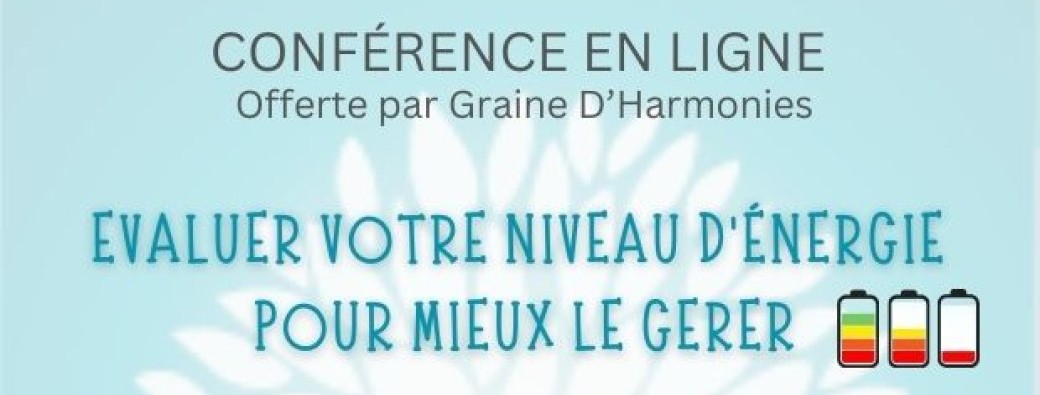 2025-04-24 20:30:00 2025-04-24 21:30:00 Europe/Paris Evaluer votre niveau d'énergie pour mieux le gérer Reservations on : https://www.billetweb.fr/evaluer-votre-niveau-denergie-pour-mieux-le-gerer -- Fatigué ? Énervé ? En proie aux crises de vos enfants ? Vous cherchez des solutions naturelles et efficaces pour retrouver de l’énergie au quotidien ? Ne manquez pas notre événement en ligne exclusif ! AU PROGRAMME : Des outils pour évaluer votre niveau d’énergie et améliorer votre quotidien et celui de votre enfant Un langage commun avec votre entourage pour apaiser les cris et les disputes Pourquoi vous devez être là ? Parce que votre bien-être est une priorité ! Cette conférence est une opportunité unique pour apprendre et repartir avec des solutions concrètes qui vous permettrons de mieux gérer votre énergie, pour vous ou vos proches. Jeudi 24 avril à 20h30 (Heure de Paris) – En live sur Zoom Réservez votre place GRATUITE et invitez ceux qui ont besoin de ces conseils ! - valerie rimonteil EI