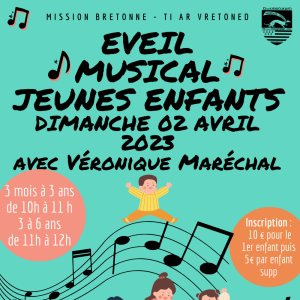 2023-04-02 11:00:00 2023-04-02 12:00:00 Europe/Paris Eveil musical jeunes enfants Reservations on : http://www.missionbretonne.bzh -- Mission Bretonne, Ti ar vretoned, Rue Delambre, Paris, France Mission Bretonne