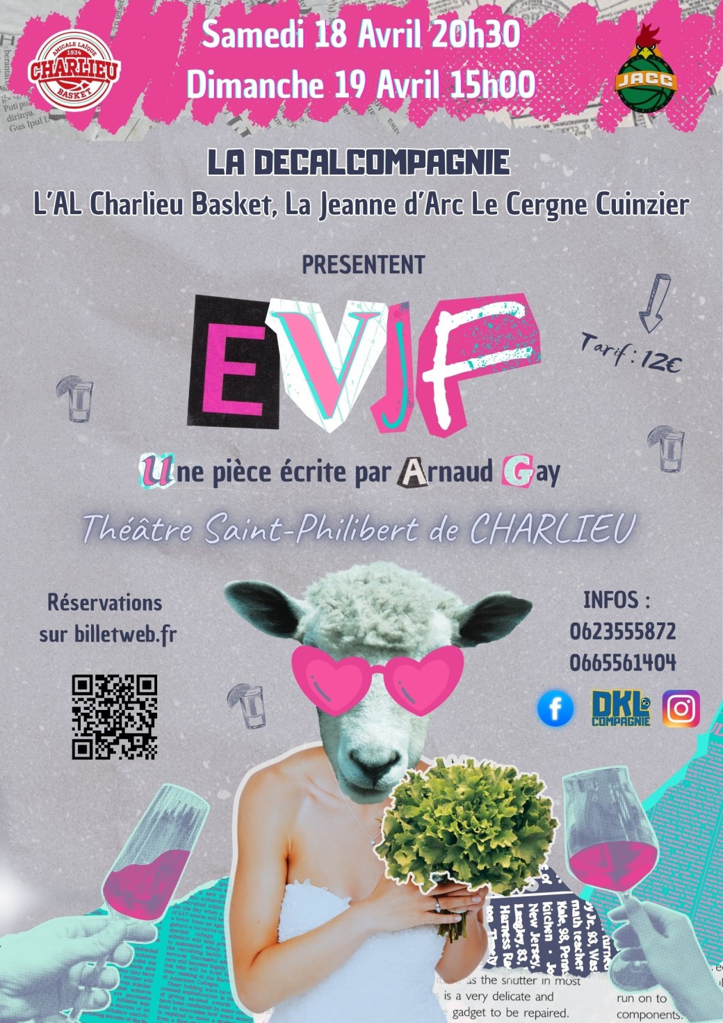 On rajoute des dates!!!! Vous n'avez pu découvrir EVJF lors de notre session de Novembre au Diapason, pas de panique, nous revenons pour 4 dates, à Perreux et Charlieu, pour différentes associations : L'AMICALE DES 86 DE PERREUX, L'AL CHARLIEU BASKET et LA JEANNE D'ARC LE CERGNE CUINZIER;
