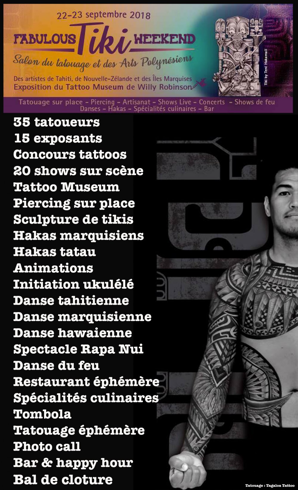 2018-09-22 11:00:00 2018-09-23 21:00:00 Europe/Paris Fabulous Tiki Weekend Reservations on : https://www.billetweb.fr/fabulous-tiki-weekend -- 40 tatoueurs et tatoueuses, artisants, spécialités culinaires, piercing sur place, Shows sur scène, concerts...Pour la première convention de tatouage 100% polynésien le programme est intense !  Aucun remboursement de billet après achat.   Ozoir-la-Ferrière, France BLACK BALL TATTOO SHOW