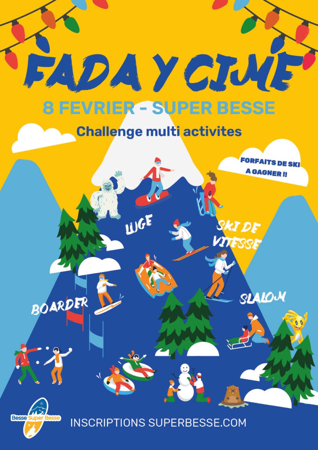 Le FADA Y CIME est un challenge à faire à ski et par équipe de 2. Vous aurez 5 épreuves à réaliser sur le domaine skiable!!