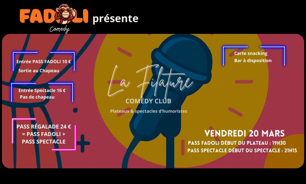 Reservations on : https://www.billetweb.fr/fadoli-comedy-2eme-dition --