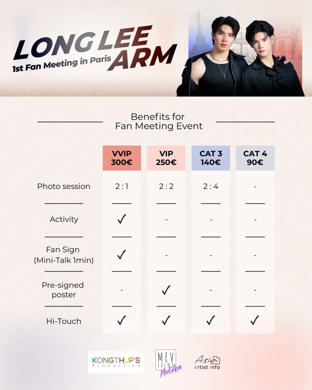 Nouveau projet pour MEV EVENT (organisateur de la Y/CON)qui s’allie avec Asia Artist Info pour vous proposer des Fan Meeting incroyables avec vos acteurs de BL thaïlandais préférés !