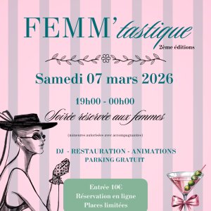 Prépare-toi à vivre une soirée unique placée sous le signe de la fête, du partage et de la bonne humeur ! Femm’tastique est un événement exclusivement dédié aux femmes, pensé pour se retrouver, danser et s’amuser en toute liberté.