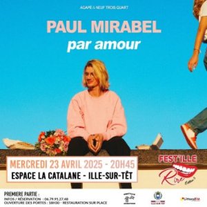 2025-04-23 20:45:00 2025-04-23 22:30:00 Europe/Paris Paul Mirabel Reservations on : https://www.billetweb.fr/festille-rire-4 -- Agapè et Neuf Trois Quard présentent   Spectacle PAUL MIRABEL   ''PAR AMOUR''   Espace La Catalane, Avenue Chopin, Ille-sur-Têt, France FEST'ILLE ANIMATIONS