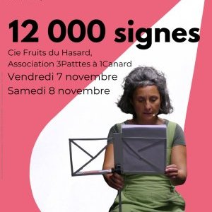 "La 6ème édition des 12000 Signes, festival de la Nouvelle porté par la Compagnie Les Fruits du Hasard et l’association 3Patttes à 1Canard se déroulera cette année sur trois jours : les 7, 8 et 9 novembre 2025. La formule est réduite et s’intitulera LE CHANT DES SIGNES car il s’agira de l’ultime édition.