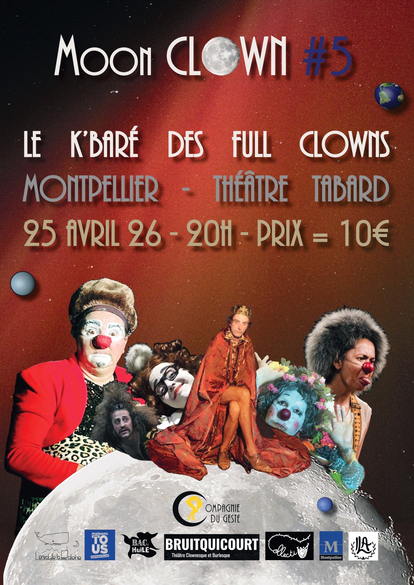2026-04-25 21:00:00 2026-04-25 21:00:00 Europe/Paris FESTIVAL DE CLOWN - Moon Clown Reservations on : http://beauxartstabard.fr -- Moon Clown Durée : 1h30- À partir de 8 ans  Clown Le clown, un Art en ReDevenir — ici et maintenant ! La Cie du Geste a réuni pour vous une constellation de clowns. Des numéros extraordinairement humains. Des personnalités artistiques en pleine émergence, dans le regard complice du spectateur. Le K’Baré des FULL Clown est un espace de création pluridisciplinaire, à la croisée du clown et des arts du vivant. Un espace où chacun·e explore son Art Singulier. On ne cherche pas à être drôle à tout prix. On cherche à être Vrai. Et vous, public, faites partie de l’expérience. Parce que le clown n’est pas un personnage. C’est un engagement. Un endroit où l’on devient pleinement Soi.   La Cie du Geste Le K'Baré des FULL Clowns Théâtre Beaux Arts Tabard, 17 Rue Ferdinand Fabre, Montpellier, France Theatre Beaux Arts Tabard