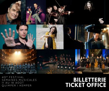 Pensez également aux concerts et spectacles libres d'accès en journée : Récital Décadent en La Majeur, Messe de l'Assomption (Ensemble Zene), Pianosphère, Boîte à Musique, Cartes Blanches. Toutes les informations sont disponibles sur www.semaines-musicales.bzh.