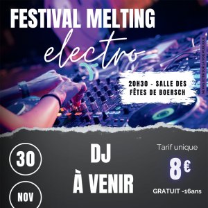 2024-11-30 20:15:002024-12-01 01:30:00Europe/ParisFestival Melting ELECTRO 2024Reservations on : https://www.billetweb.fr/festival-melting-electro-2024