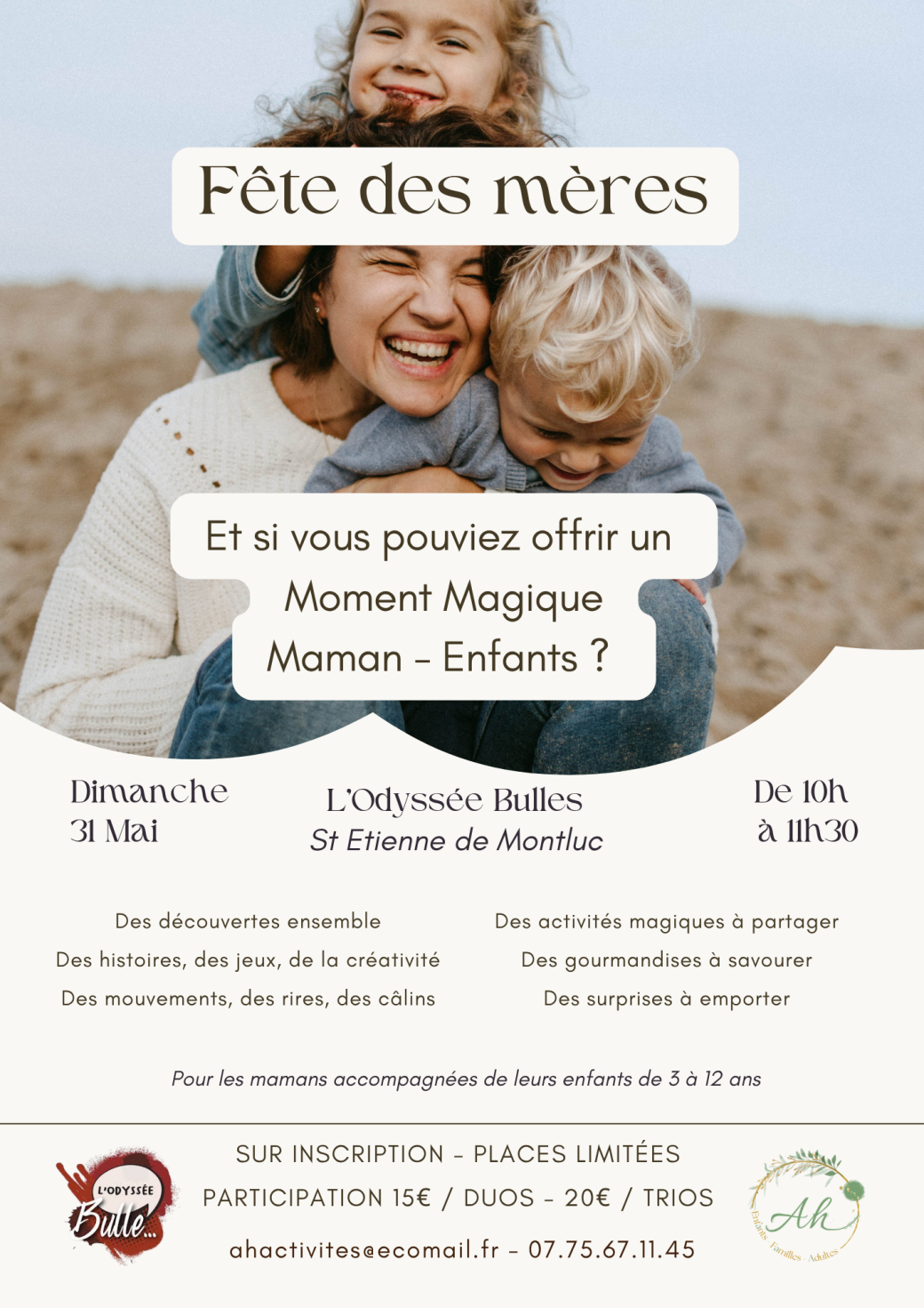 Offrir cette activité partagée, c'est offrir de la découverte, de la douceur, des rires, de la Magie à une maman et ses enfants pour cette belle journée que nous pourrons célébrer dans le jardin de l'Odyssée Bulle.