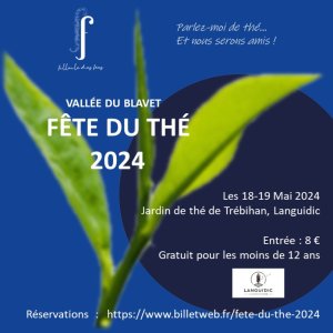 Rendez-vous à notre jardin de thé (Ecluse de Trébihan, Languidic) les Samedi 18 et Dimanche 19 Mai, départs à 14h00, 15h00, 16h00 et 17h00. Durée de la visite : environ 1h, les visiteurs pourront bien sûr rester aussi longtemps que souhaité. Au programme :