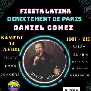 DANIEL GOMEZ( chanteur) arrive directement de Paris avec son "Show Latino" Salsa, bachata, cumbia, merengue, boleros et plus d'autres rythmes qui nous feront danser toute la nuit .