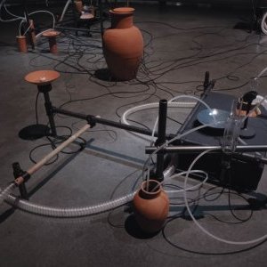En croisant différents champs d’investigation comme l’archéologie, la musicologie, la mécanique des fluides, la thermodynamique, la poterie ou encore la verrerie scientifique, l’installation active des processus hybrides entre le physique et le sonore et propose ainsi un nouvel environnement sensoriel à partir duquel le monde peut être écouté autrement.