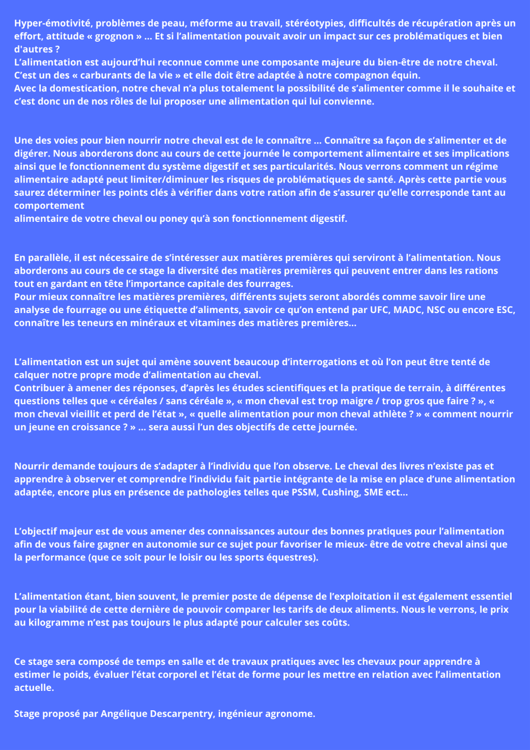 2026-03-29 09:30:002026-03-29 17:30:00Europe/ParisFormation alimentation du cheval par Angélique Descarpentry - Equi-transm'êtreReservations on : https://www.billetweb.fr/formation-alimentation-du-cheval-par-angelique-descarpentry-equi-transmetre