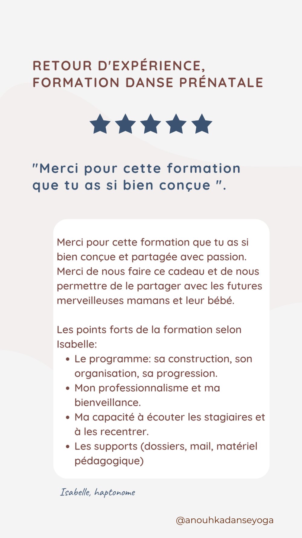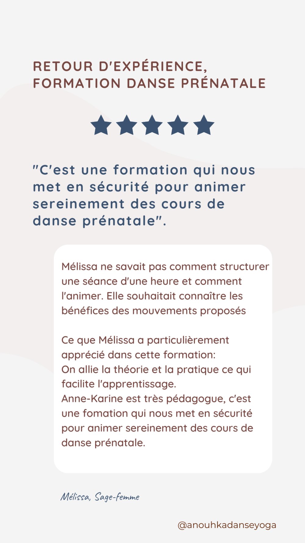 Dans cette formation, vous apprendrez comment créer et animer des cours de danse prénatale. Quelque soit votre expérience en danse, vous serez capable de proposer des enchaînements simples et sécuritaires aux femmes enceintes que vous accompagnez.