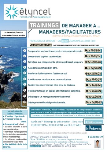 Un échange téléphonique est organisé avant chaque inscription ainsi que l'envoi d'un descriptif synthétique des différents trainings et de leurs objectifs.