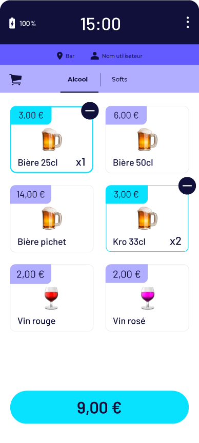Chaque vendeur saisit ses commandes sur son terminal cashless et débite le support de l’acheteur.