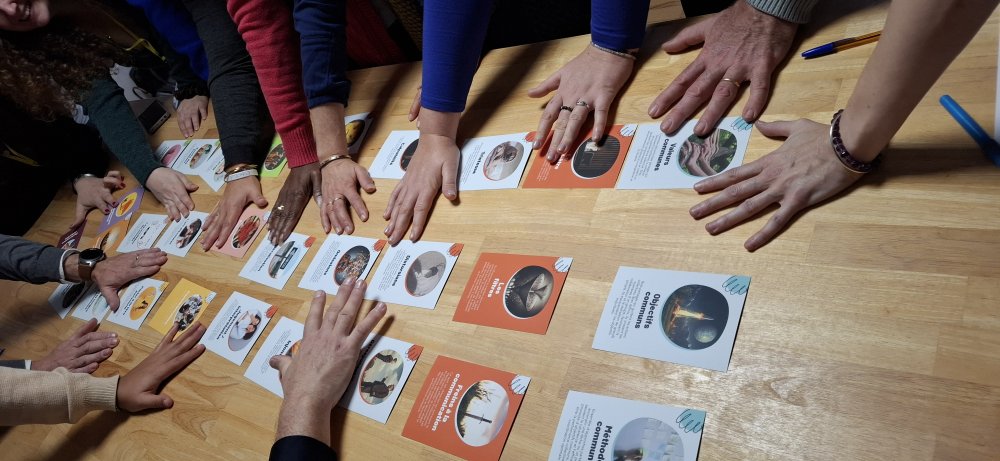 Cette Fresque est animée bénévolement par Val & Phil, fondateurs de l'Atelier des Pas Sages. Le prix de votre participation est libre avec un montant minimum de 10€ qui finance la location de la salle et le petit déjeuner.