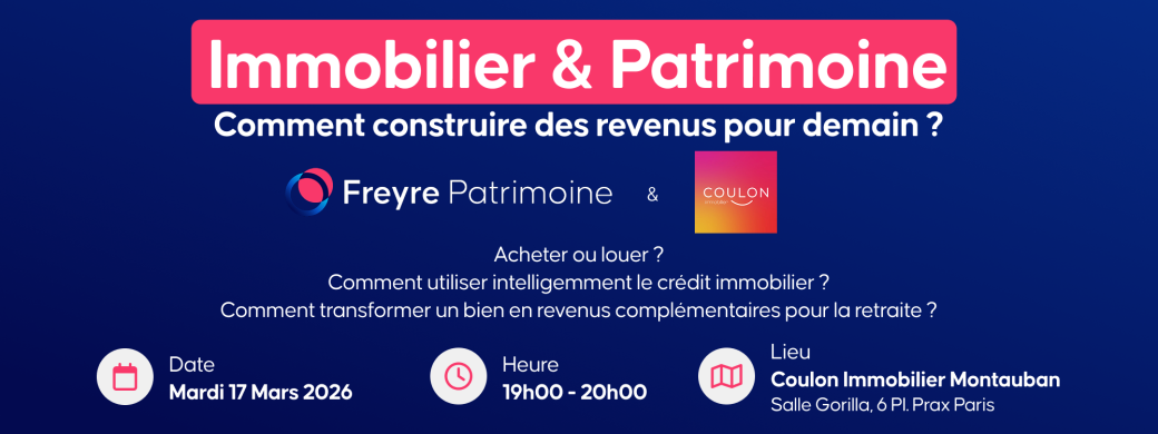 Le cabinet Freyre Patrimoine vous invite à une conférence gratuite et accessible à tous à l'agence Coulon Immobilier, place Prax-Paris à Montauban.