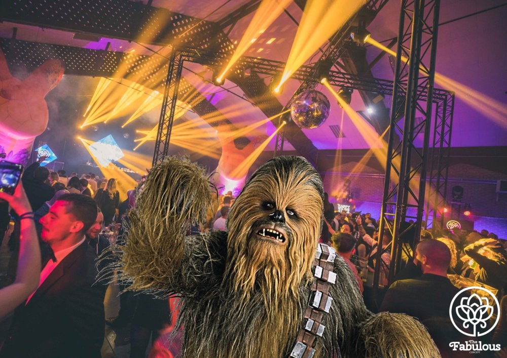 ➜ Écran Immersif de 150m2, pluie de lasers , effets spéciaux , déco intergalactique , performers etc…