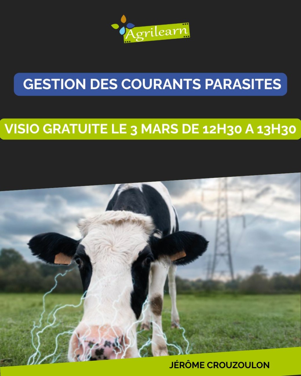 Rendez-vous le mardi 3 mars de 12h30 à 13h30 pour un webinaire avec Jérôme CROUZOULON, géobiologue spécialisé en élevage, membre de la Confédération Nationale de Géobiologie et de l’Association Agrigeobio