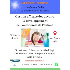 Le cours Julie, reconnu pour ses techniques innovantes d’apprentissage et d’épanouissement du jeune public, vous propose cet atelier.