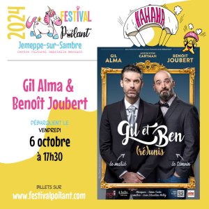 Premier rôle dans "Nos chers voisins" (TF1) mais aussi celui du célèbre César Wagner (France 2), Gil Alma et son comparse Benoît Joubert vont vous dérider au Festival Poilant ! Ils sont beaux, ils sont drôles, ils sont chauds pour vous faire poiler !