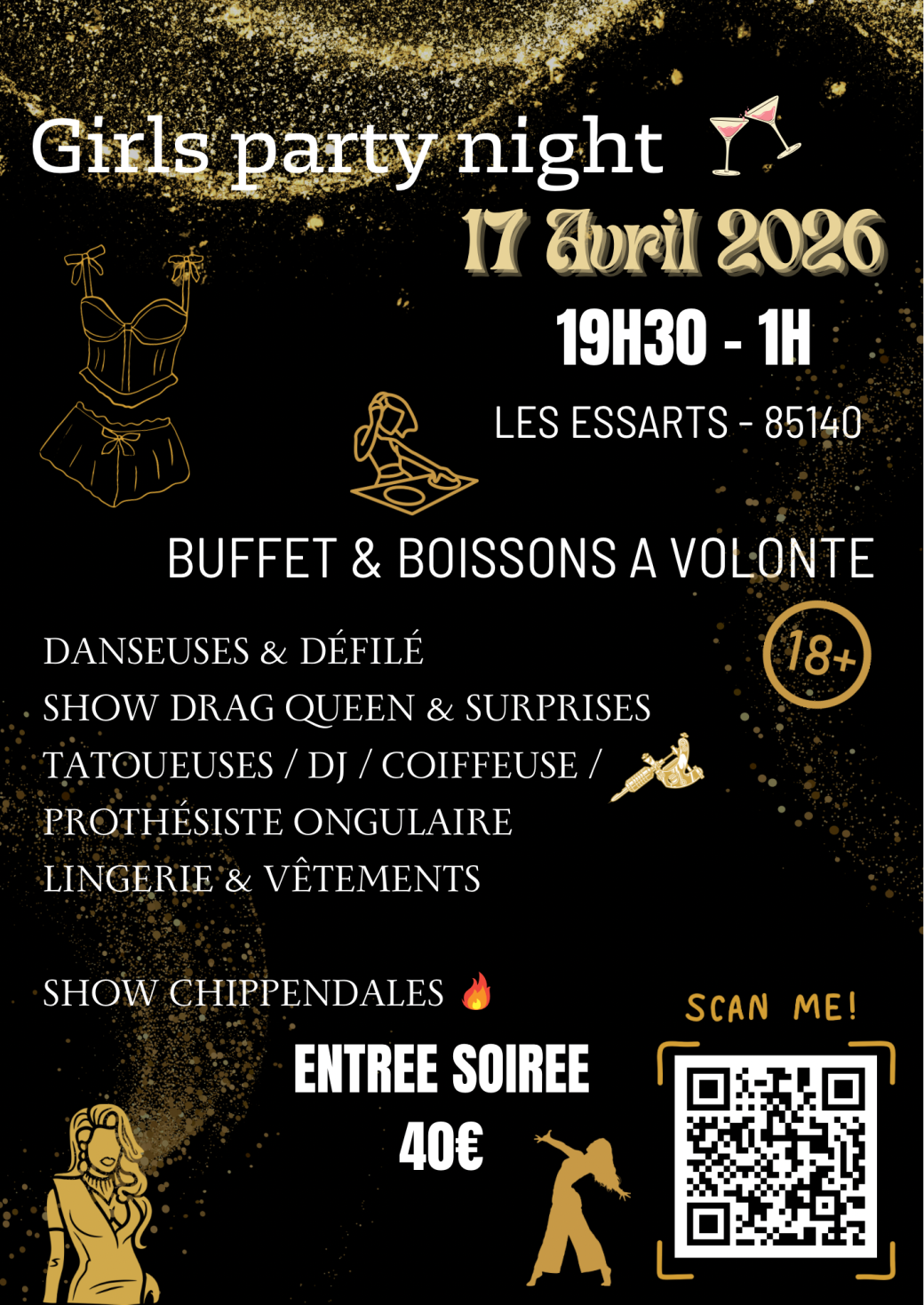 Une soirée rien que pour vous les filles !!! Avec au programme des danseuses professionnelles, des défilés, un drag queen, des surprises & de quoi manger et trinquer à volonté. Pour clôturer la soirée, un show chippendales viendra clôturer la soirée!!