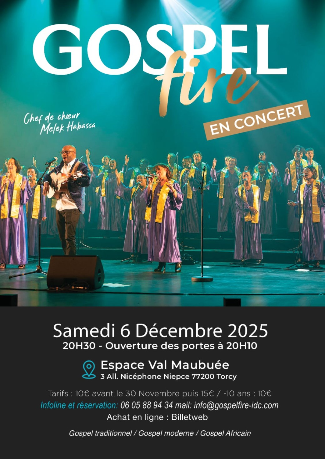 Melek & Gospel Fire vous invite à une soirée gospel riche en émotion et en énergie. Sous la direction artistique de Melek, le chœur réunit des voix puissantes et unies qui parcourent un répertoire mêlant gospel traditionnel, gospel moderne et influences africaines.