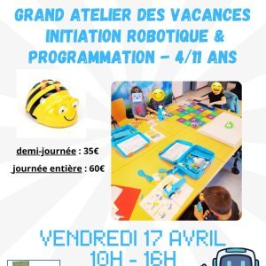 Le GRAND ATELIER "ROBOTIQUE & PROGRAMMATION" revient pour les vacances de Pâques, à BARR, le VENDREDI 17 AVRIL 2026 !