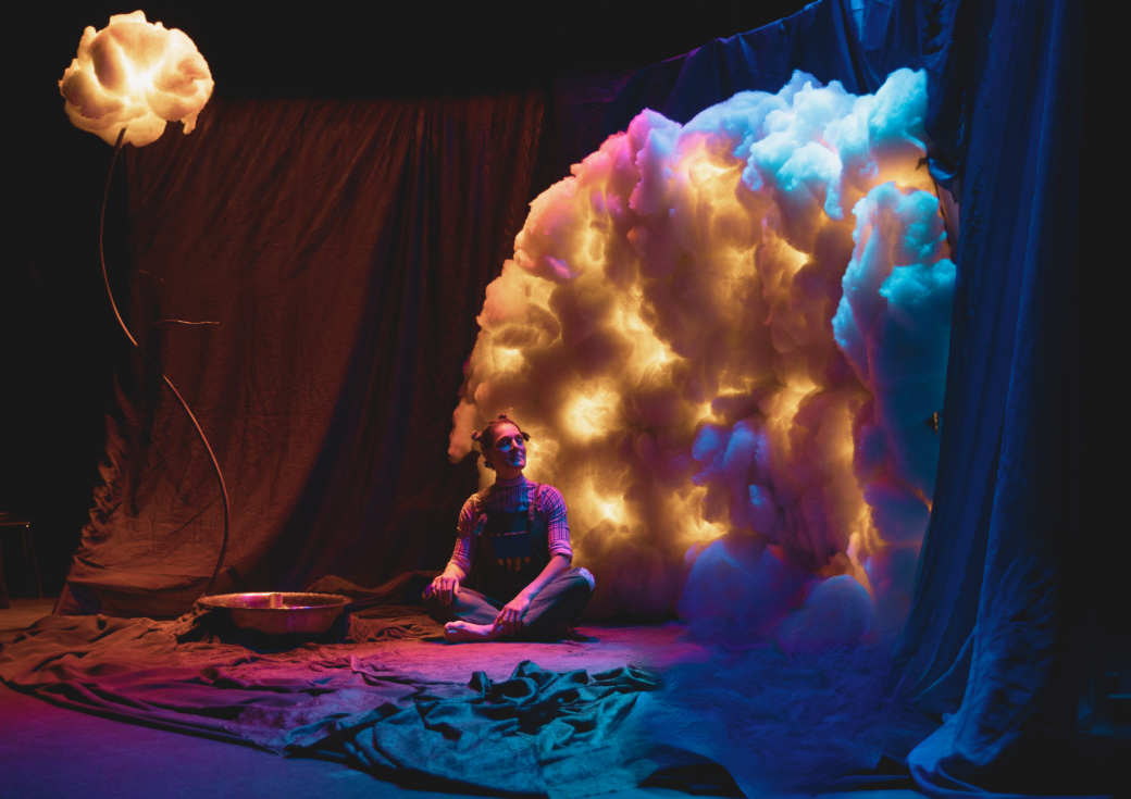 Grandir m’inspire est un spectacle sensible et poétique destiné aux tout-petits et leurs accompagnants. Les grandes étapes de la petite enfance sont évoquées par le petit personnage, dans un décor onirique. C’est comme un grand rêve qu’il faut s’approprier : depuis l’arrivée au monde jusqu’à l’acquisition du moi. Ce spectacle propose une aventure à travers les sensations, les émotions, le rapport à l’autre, à l’espace, à la matière. Le petit personnage joue avec les éléments eau, terre et air dans un univers où les lumières se faufilent et se colorent. Nous retrouverons une fontaine jaillissante, de la terre glaise et des tissus très fins et légers. Avec peu de paroles, dans une écriture corporelle, visuelle et sonore, “Grandir m’inspire” est une plongée sensible dans le système chaotique du petit enfant vers une tentative de structuration. Douceur et drôlerie garantis.