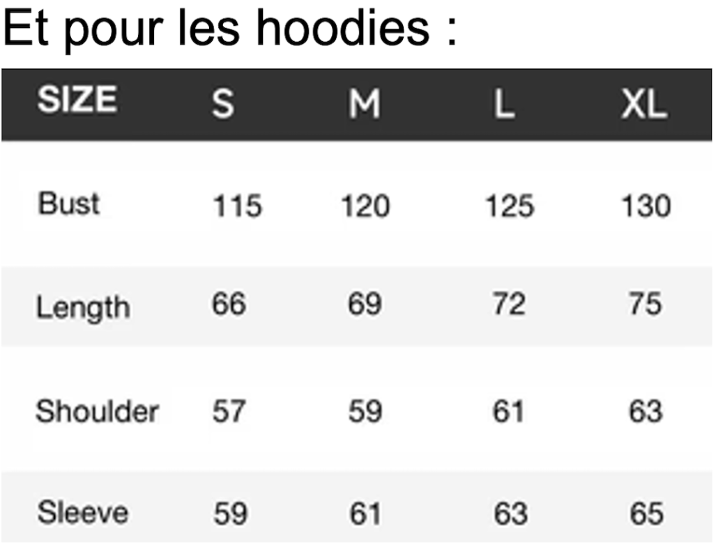 Concernant le poids, le T-shirt pèse 280GSM et le hoodie 440GSM.