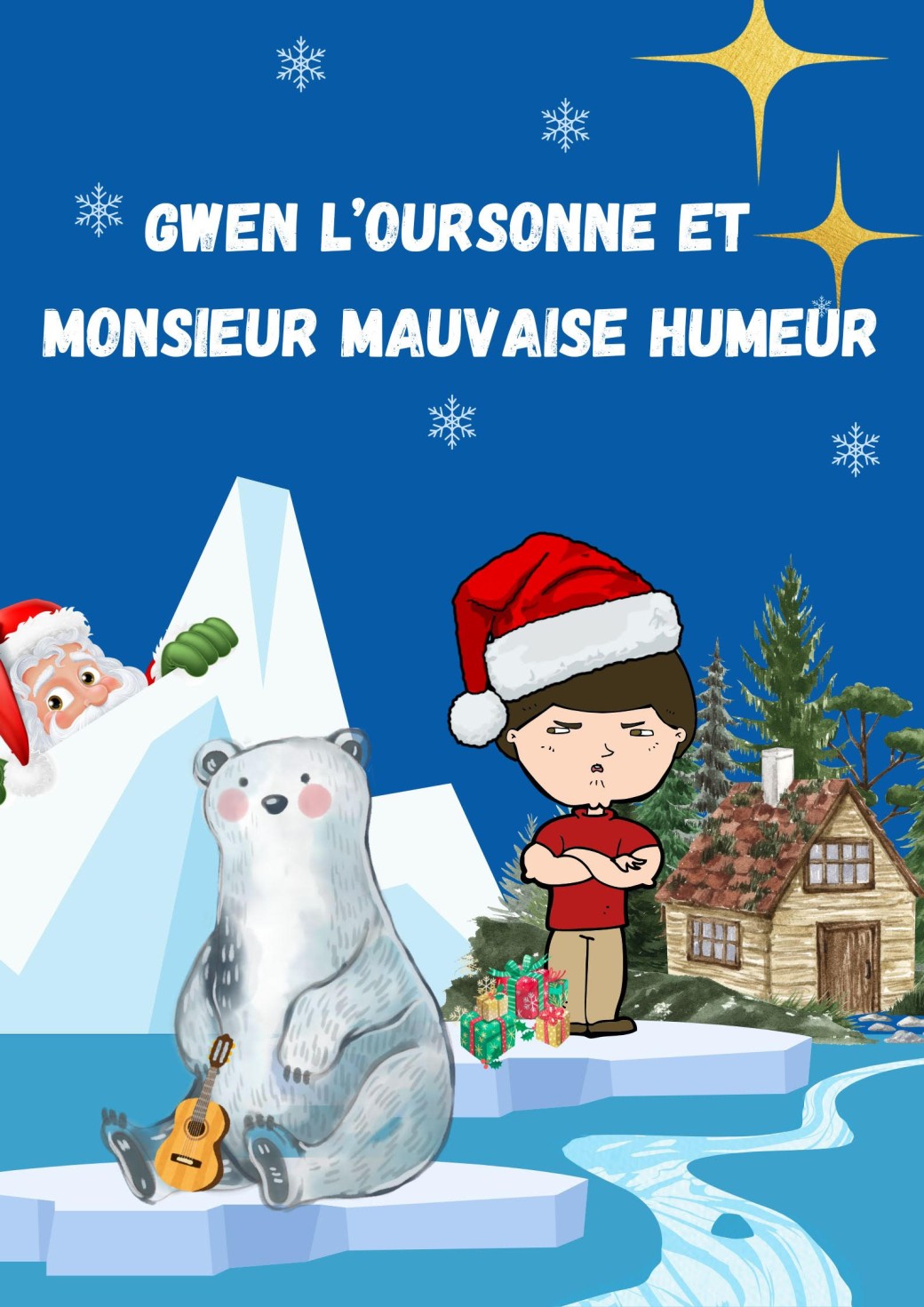 Gwen l'oursonne polaire se perd sur la banquise le matin de noël et croise un musicien grognon: Monsieur Mauvaise Humeur. Il partent tout deux à la recherche des parents de Gwen.
