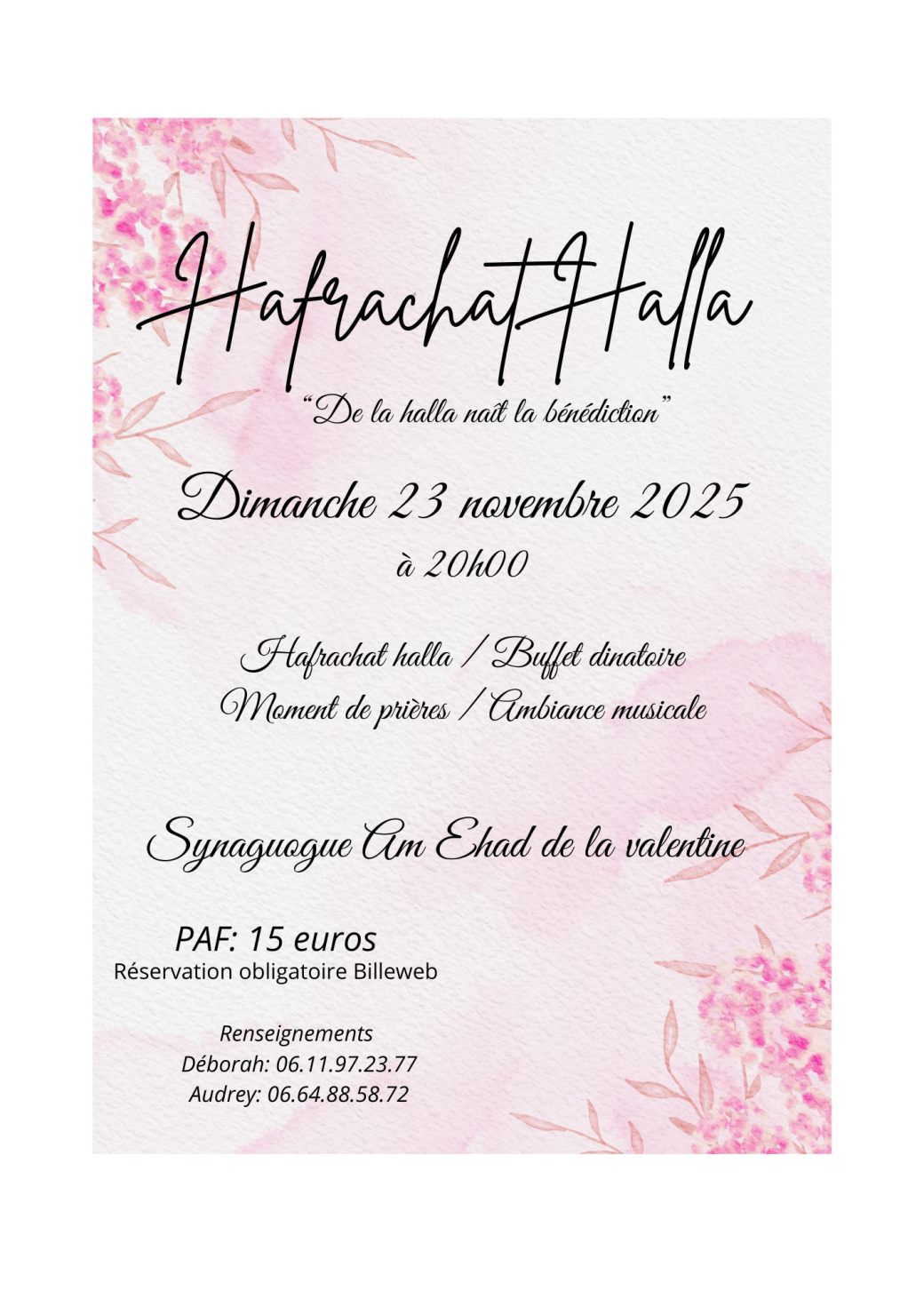 Reservations on : https://www.billetweb.fr/hafrahat-halla-roch-hodech-kislev --