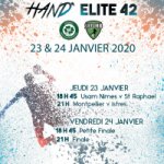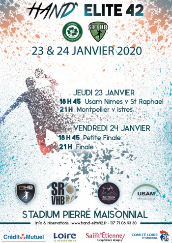 2020-01-23 18:40:00 2020-01-24 23:45:00 Europe/Paris Hand Elite 42 Reservations on : https://www.billetweb.fr/hand-elite-42 -- Hand Elite 42 , Tournoi de handball du plus haut niveau français organisé par le club du SAM HB et du HBSEM 42 Le 23 ét 24 Janvier 2020Les 4 équipes présentes cette année :   - Istres    - Montpellier   - Nîmes     - Saint Raphael  Stadium Pierre Maisonnial, Rue Burdeau, Saint-Étienne, France Hand'élite 42