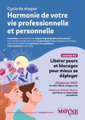 2022-11-19 10:00:00 2023-07-01 18:30:00 Europe/Paris Harmonie Vie professionnelle et personnelle Stage #Journée Reservations on : https://www.billetweb.fr/harmonie-vie-professionnelle-et-personnelle-stage-journee -- #J2 Libérer peurs et blocages pur mieux se déployer Rognes, France Nathalie Moyne EI