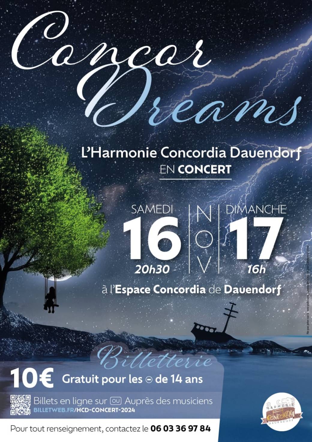 Après avoir célébré son centenaire l'an passé, l'Harmonie Concordia de Dauendorf a le plaisir de vous inviter à son Concert Annuel qui aura lieu les samedi 16 novembre à 20h30 et dimanche 17 novembre à 16h00 à l'Espace Concordia de Dauendorf.