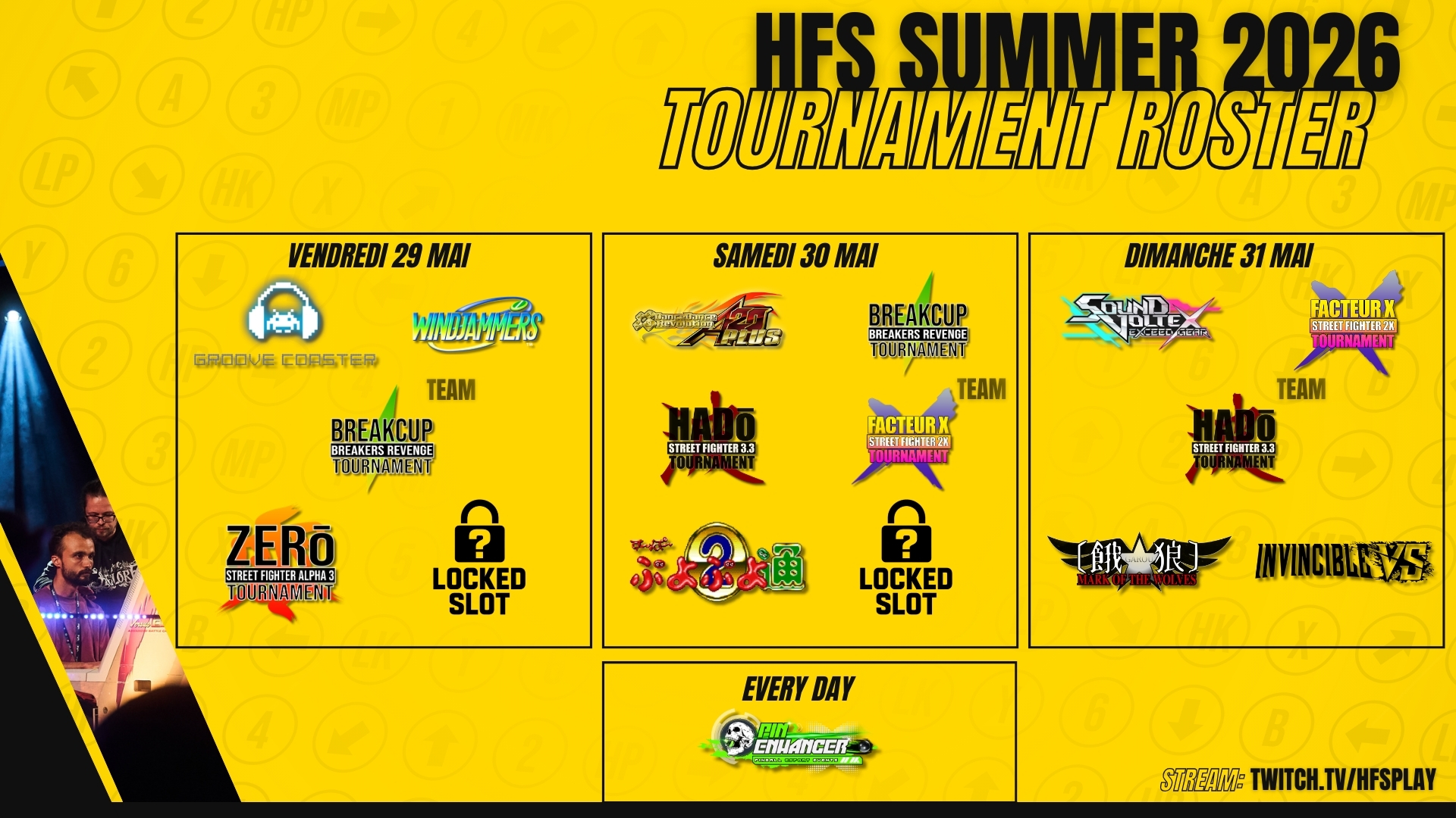 HFS Play propose un rassemblement dédié à la culture arcade, flipper et rétro-gaming, dans un environnement conçu et pensé pour le jeu, l’échange et la compétition.