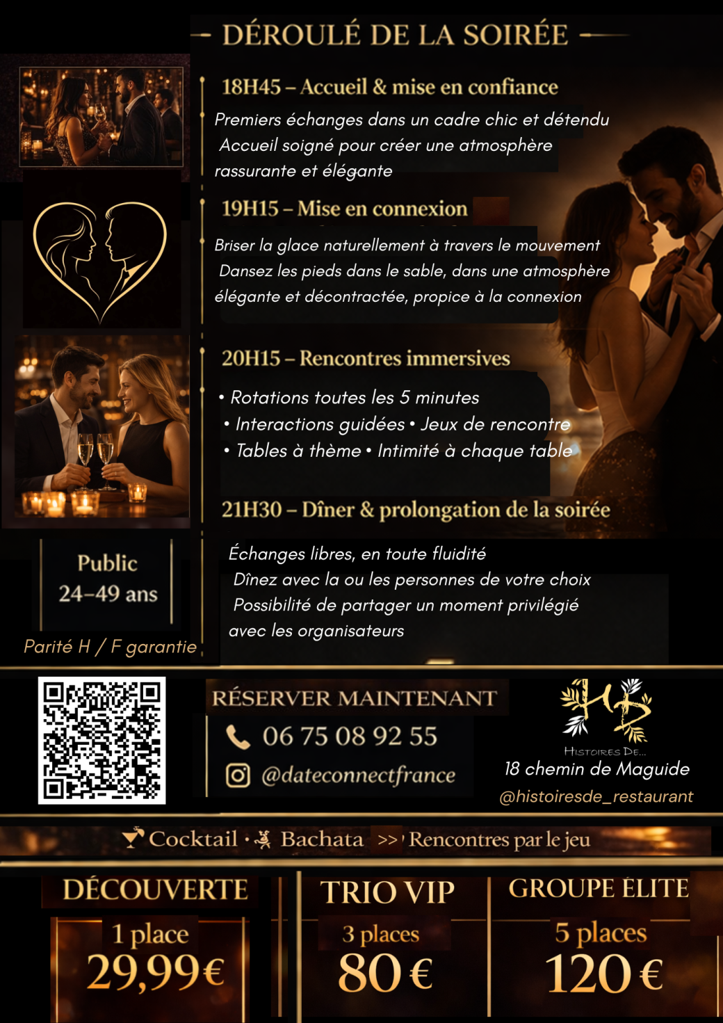 Reservations on : https://www.billetweb.fr/histoire-de-soiree-privee-date-connect-rencontres-selectives-experience-exclusive --