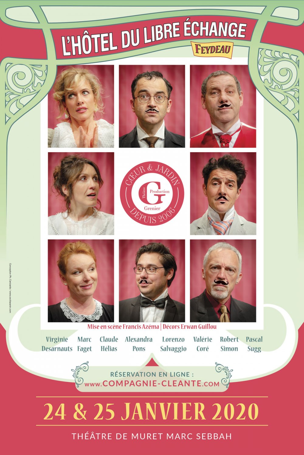 Auteur : Georges Feydeau - Par : Compagnie Cœur et Jardin - Mise en scène : Francis Azéma - Avec : Virginie Desarnauts, Philippe Canizarès, Claude Hélias, Alexandra Pons, Lorenzo Salvaggio, Valérie Coré, Robert Simon, Pascal Sugg - Régie et décors : Erwan Guillou - Durée : 1h40 - Tout public.