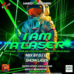 2025-11-15 23:00:002025-11-16 05:00:00Europe/ParisI AM LASER - I'M ALIVEReservations on : https://www.billetweb.fr/i-am-laser-im-alive