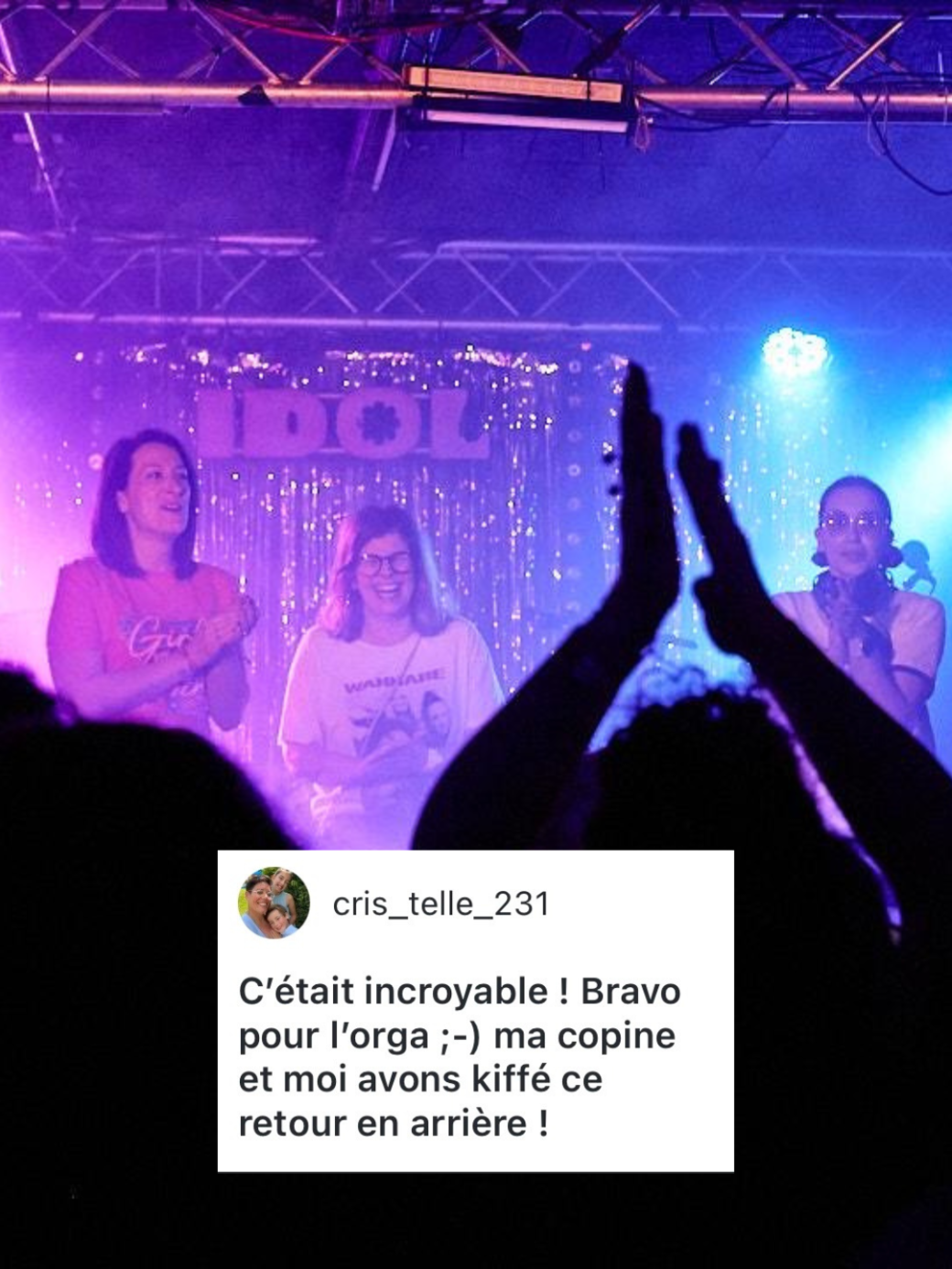 Une expérience immersive, festive et collective où tu viens pour chanter, danser, jouer et retrouver le meilleur des années 80/90/2000.